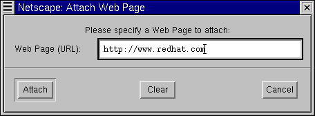 You can also "drag" a URL from Navigator's Location Toolbar and "drop" it in your letter. In your letter, click on the paperclip icon under the address field. Now, from Navigator, go to the Location Toolbar and hold down your mouse button over the nearby bookmark icon, which looks like this: