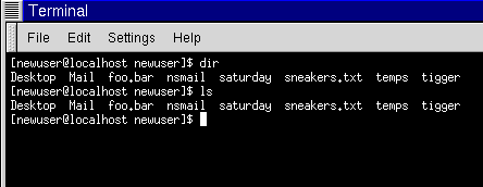 In Linux, dir won't fully display the contents of directories, and doesn't have the power or flexibility of the list command -- ls.