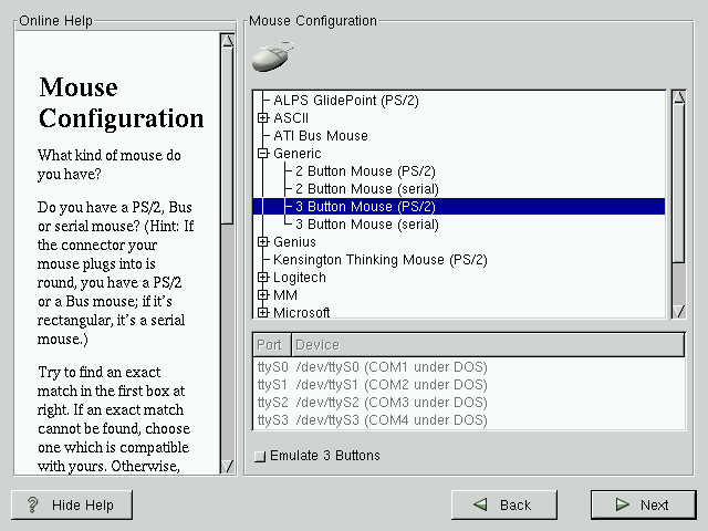 If you cannot find a mouse that you are sure is compatible with your system, select one of the Generic entries, based on your mouse's number of buttons, and its interface.