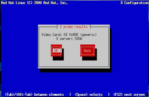 The installation program then probes for your video card. If your card is detected, click OK to continue.