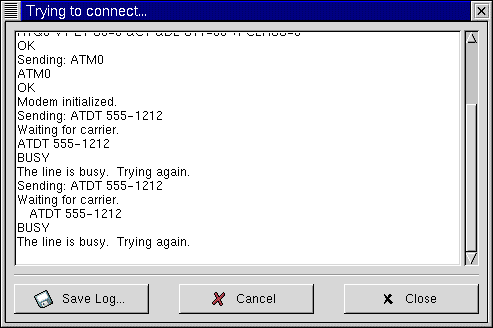 Working with the debug feature can help you whittle down whatever problem might be hindering you from a working connection. When you're finally successful, close the window to stop debugging. Since the debug option is only used to diagnose your setup, it won't maintain your connection to your ISP.
