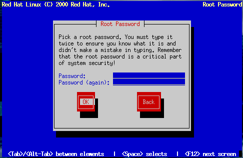 ![]() | You should make the root password something you can remember, but not something that is easy for someone else to guess. Your name, your phone number, qwerty, password, root, 123456, and anteater are all examples of poor passwords. Good passwords mix numerals with upper and lower case letters and do not contain dictionary words: Aard387vark or 420BMttNT, for example. Remember that the password is case-sensitive. Write down this password and keep it in a secure place. |