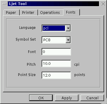 Figure 5-10. The Fonts dialog in Ljet Tool