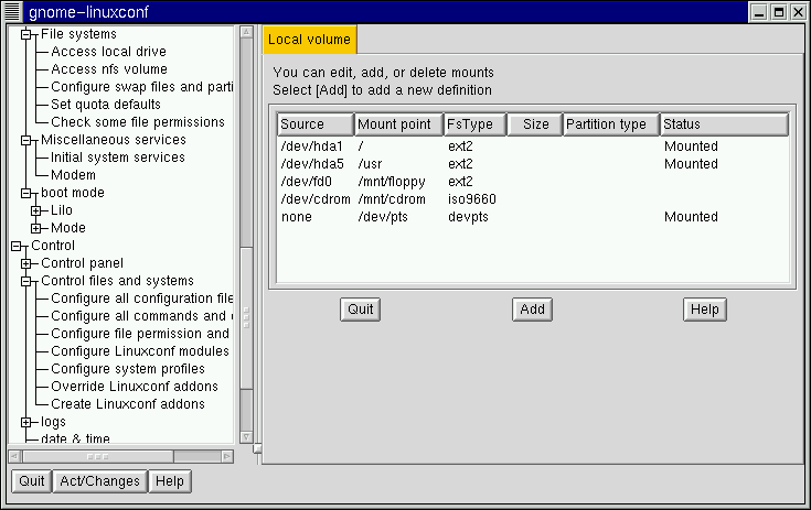 1. Open Control => Control files and systems => Configure linuxconf modules