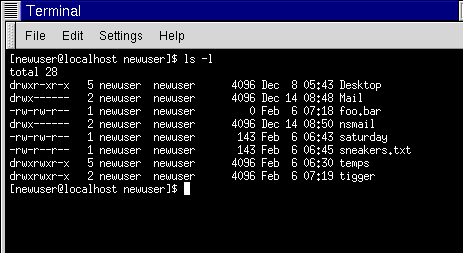 [newuser@localhost newuser]$ cd tigger bash: tigger: Permission denied [newuser@localhost newuser]$ |