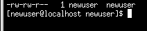 Attualmente, il proprietario (noi) e gli utenti del gruppo ( newuser) possono leggere e scrivere il file.