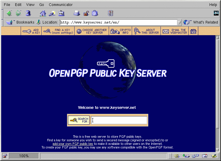 Dal vostro browser andate sul sito di Keyserver.Net digitate l'indirizzo http://www.keyserver.net e selezionate l'opzione da aggiungere alla vostra chiave pubblica PGP.