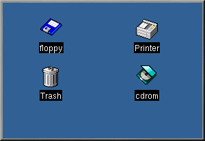 The icons for floppy and cdrom provide shortcuts to those devices. You can access either of these devices by left-clicking once on one of the icons.