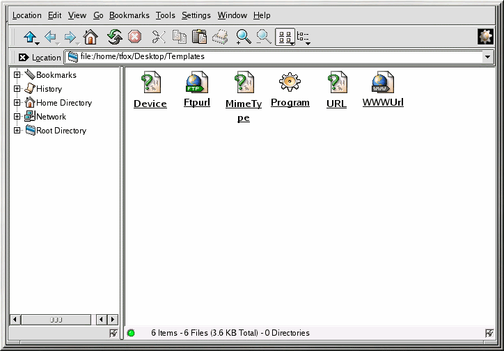 Beim ersten Starten von KDE werden Ordner auf Ihrem Desktop angezeigt, die Dateien enthalten. Zu den wichtigsten Ordnern mit Dateien zählen die Ordner Templats und Autostart (siehe Abbildung 3-3).