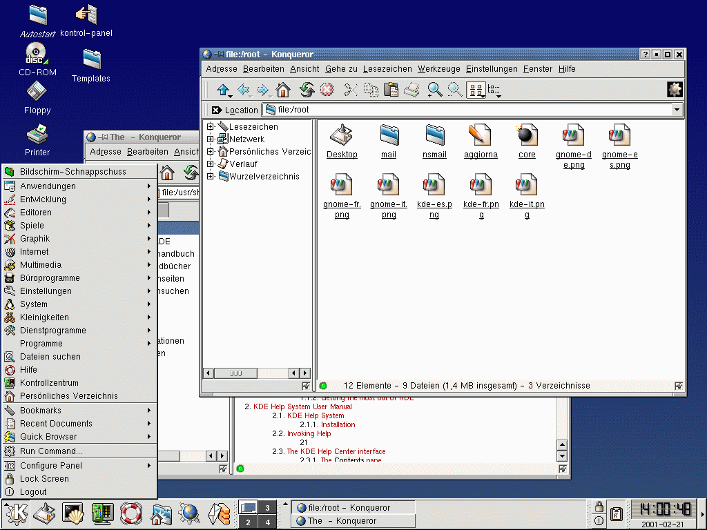 KDE stellt Ihnen eine vollständige Desktop-Umgebung einschließlich Dateimanager, Windowmanager, integriertem Hilfesystem und einem Konfigurationsprogramm sowie zahlreiche Tools und Dienstprogramme zur Verfügung. Darüber hinaus werden für KDE immer mehr Anwendungen entwickelt.