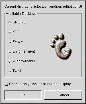 In addition to changing your graphical environment at the login screen, you can switch to another environment when you're already logged in. You can change environments using the Switchdesk utility (see Figure 3-10). When you restart your session, you'll find your new environment.