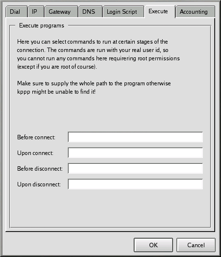 Quit on Disconnect: When you've disconnected from your ISP, Kppp will also quit. Otherwise, you'll return to the initial Kppp window.