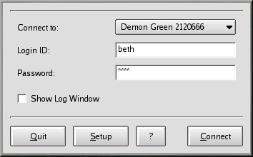 If you want to debug the configuration, or watch the progress of your connection, check the box marked Show Log Window.