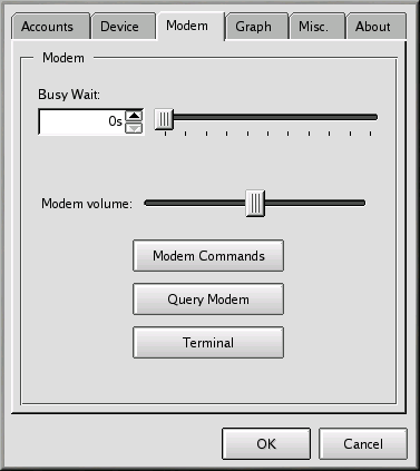 From the Modem tab, you can test your modem's configuration (see Figure 6-25). By adjusting the slider next to Modem volume, you can modify the volume of your modem while you're dialing and connecting.