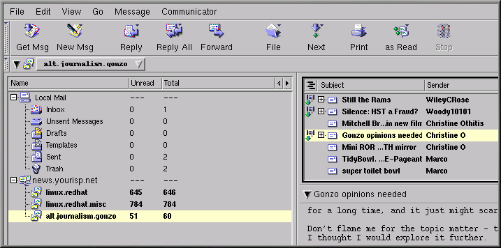 La ventana Correo Netscape & Grupos de noticias que se abrirá será será similar al Figura 7-18.