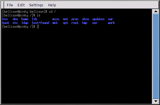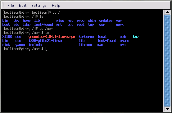 [newuser@localhost /skel]$ cd /usr [newuser@localhost /usr]$ ls |