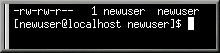 Con esta opción se visualizan muchos de los detalles. Podemos ver quién puede leer (r) y escribir (w) el fichero, el creador del fichero (newuser) y a qué grupo de usuarios pertenece (newuser).