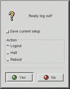 Seleccione cualquiera de las opciones y haga click en el botón Yes para continuar. Seleccione la opción Save current setup si quiere guardar su sesión. Guardar la sesión le permitirá conservar la configuración actual de su panel y guardar los programas que haya abierto.