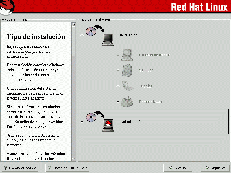 Llegados a este punto, debería haber escogido Actualización como tipo de instalación preferida (consulte la Figura A-1).