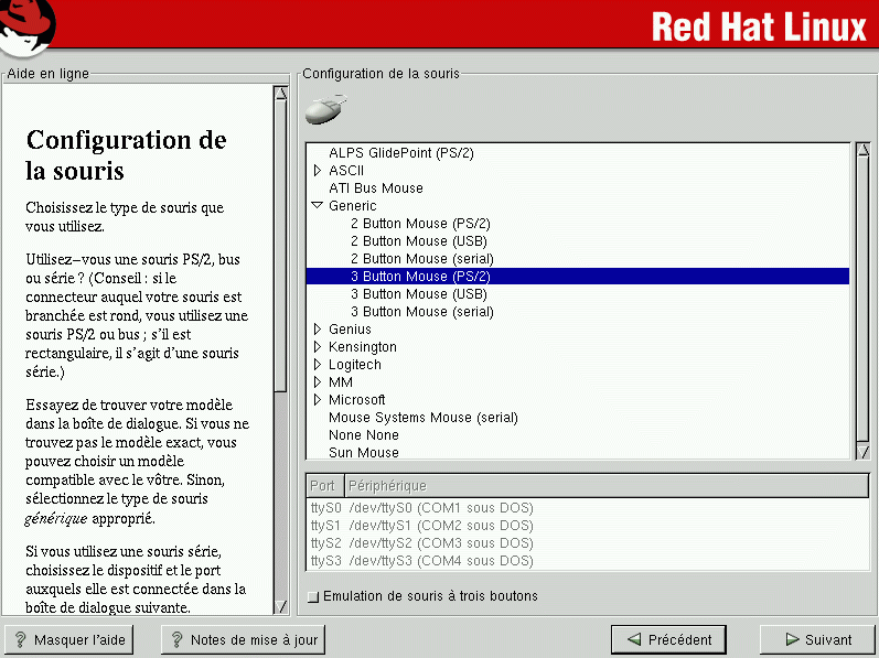 Si vous ne trouvez pas de souris dont vous êtes certain qu'elle soit compatible avec votre système, sélectionnez l'une des entrées génériques, en fonction du nombre de boutons de votre souris et de son interface.