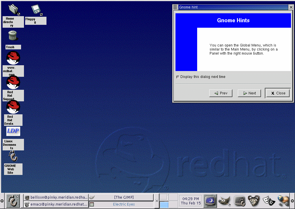 GNOMEを起動すると、最初にFigure 2-1に示すような画面が表示されます。