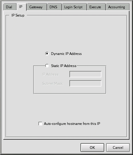 Authentication: From this pulldown list, you can select a method of login authentication: PAP, Script-based, Terminal-based, or CHAP. (These are methods used to verify your login. You may want to check with your ISP to determine which type of authentication method you must use.) If you're required to use a script-based login, the section called The Login Script Tab can assist you in entering your script.