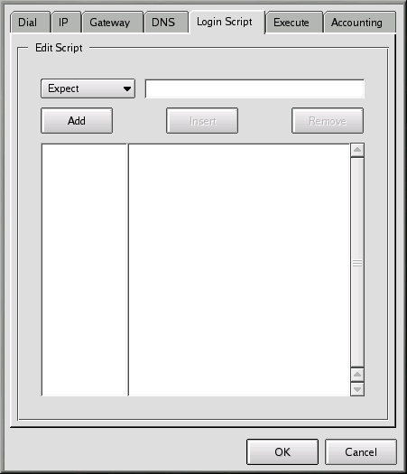 The Login Script tab allows you to specify how you want to login to your ISP (see Figure 6-21). If you chose to use a script-based login in the Authentication procedure of the Dial tab, you can enter that script here.