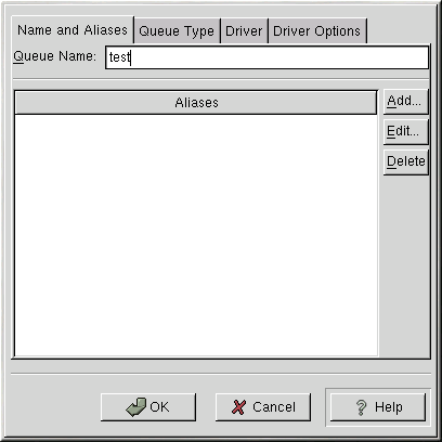 If you want to rename a printer, change the value of Queue Name in the Names and Aliases tab. Click OK to return to the main window. The name of the printer should change in the printer list. Click Apply to save the change and restart the printer daemon.
