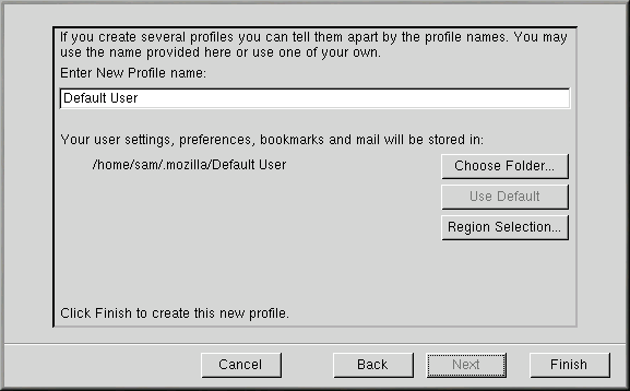 You can also click Choose Folder to select where your Mozilla settings and preferences will be stored. By default, these settings are stored in: